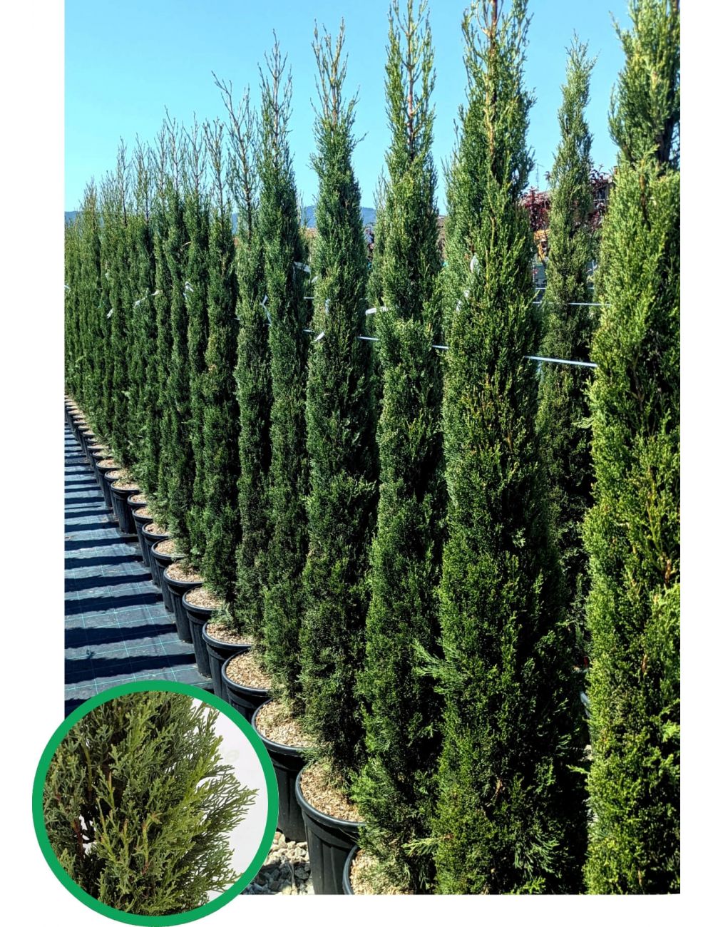 Il Cipresso Toscano è una pianta sempreverde dalla forma slanciata ed elegante, ideale per creare viali, siepi verticali o punti focali di grande impatto visivo.