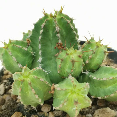 Bellissima succulenta, costituita da piccoli fusti che non raggiungono altezze imponenti, ma tendono piuttosto a svilupparsi in cespi di più fusti ravvicinati, assumendo l’aspetto di un meraviglioso cuscino verde opaco. Estremamente simile ad un cactus, presenta 4 costolature longitudinali ben marcate, munite di areole bianche molto ravvicinate che creano quasi una candida linea continua, come a voler evidenziare le bordature. Solo raramente fuoriesce qua e là qualche piccola spina chiara, talvolta due per areola. Nel complesso E. makallensis, per la sua perfezione geometrica e i suoi margini disegnati, appare quasi una magnifica scultura, perfetta per arredare ambienti di ogni stile!