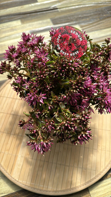 Sedum "Spot on deep rose" è una pianta grassa succulenta perenne. Raggiunge un’altezza sino a 10 cm., i fusti sono semplici e semi-prostrati, arcuati e di un bel colore rossastro, con foglie carnose. Da giugno a fine luglio produce un a abbondante fioritura di colore rosa/rosso che spuntano da peduncolati. Resiste al gelo invernale senza alcun tipo di problema e non richiede abbondanti innaffiature.