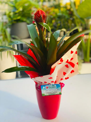 La Guzmania è una pianta da interno originaria delle zone tropicali del Centro e Sud America ed appartenente alla famiglia delle Bromeliaceae. Pianta sempreverde che può svilupparsi sino ad 1 metro di altezza e che presenta foglie arcuate e nastriformi che terminano a punta di colore verde scuro, disposte a rosetta a formare una sorta di conca. Dal centro della rosetta si innalza uno stelo ramificato di colore rosso alla cui sommità in estate si propagano vari fiori che formano una spiga che assume la stessa tonalità di rosso dello stelo con punte arancioni. La Guzmania si presta bene come complemento di arredo da posizionare in ambienti della casa e dell’ufficio con temperature sopra i 15 gradi; predilige esposizione dove c’è luce diffusa evitando i raggi diretti del sole, ma tollera anche zone di ombra parziale. Per la sua coltivazione è necessario un terreno leggermente acido con buon drenaggio, mentre le irrigazioni devono essere abbondanti nei periodi più caldi e ridotte in inverno: in natura tende ad accumulare l’acqua piovana nella coppa formata dalle foglie quindi si consiglia di riempirla periodicamente con acqua distillata. In caso di ambienti troppo secchi occorre nebulizzare il fogliame.
